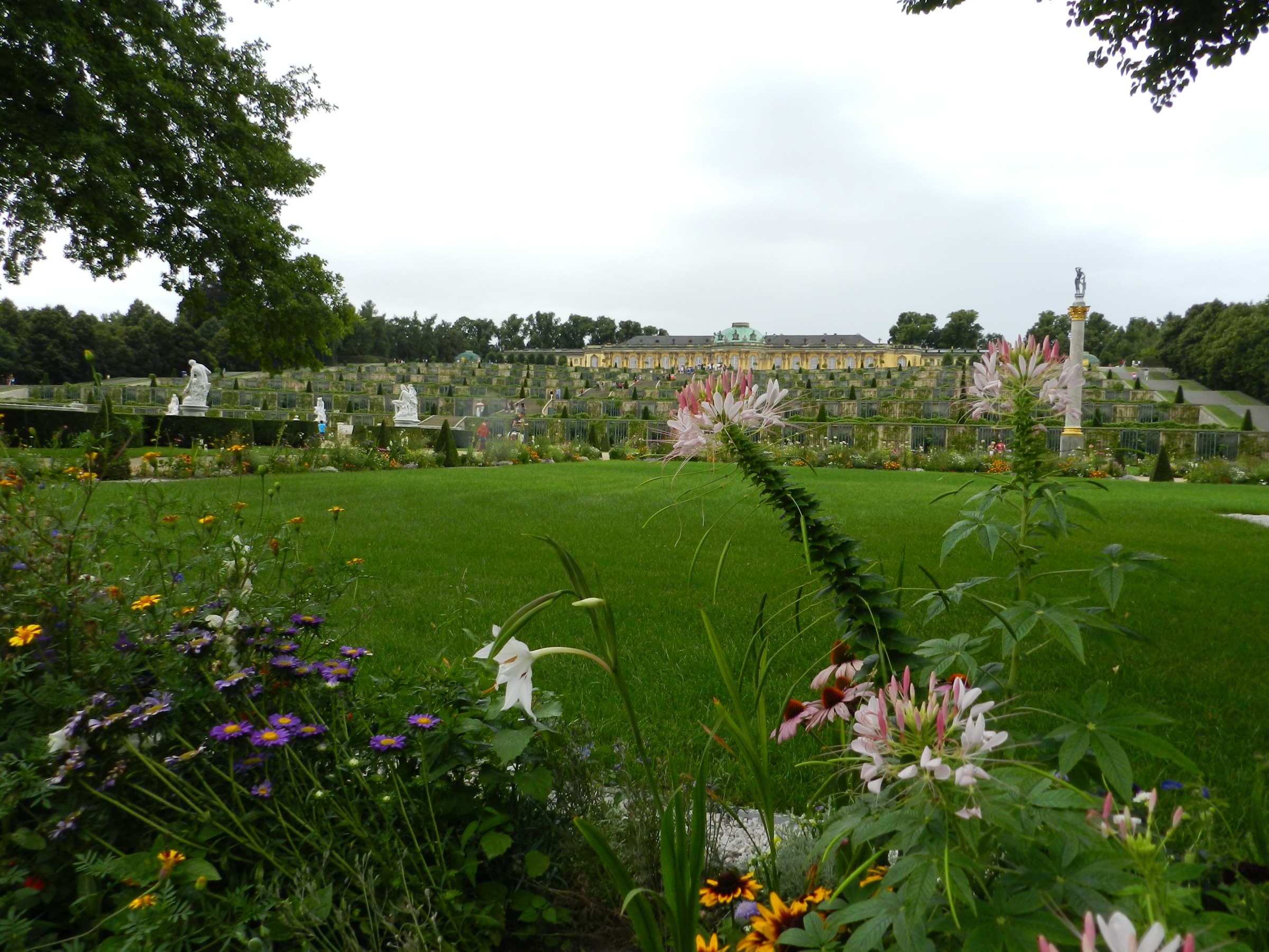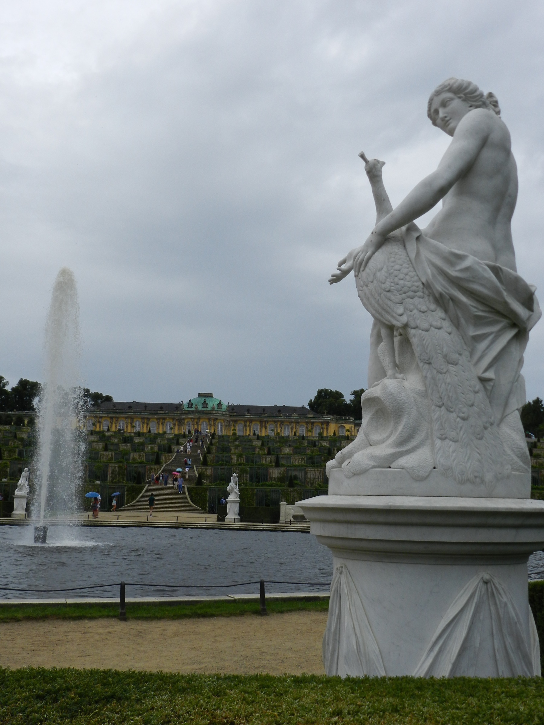 You can be well impressed just by the centre, and then you walk into the royal park. Oh my days. Gardens, creeks, flowers and centenarian trees. Sanssouci Palace is announced by a very beautiful fountain and stairs along the terracing hill full of fruit plants. I really like the effect of this hilly terrace with the one floor yellow castle because I think it’s a superb way to exhibit the power without being pompous at all.
